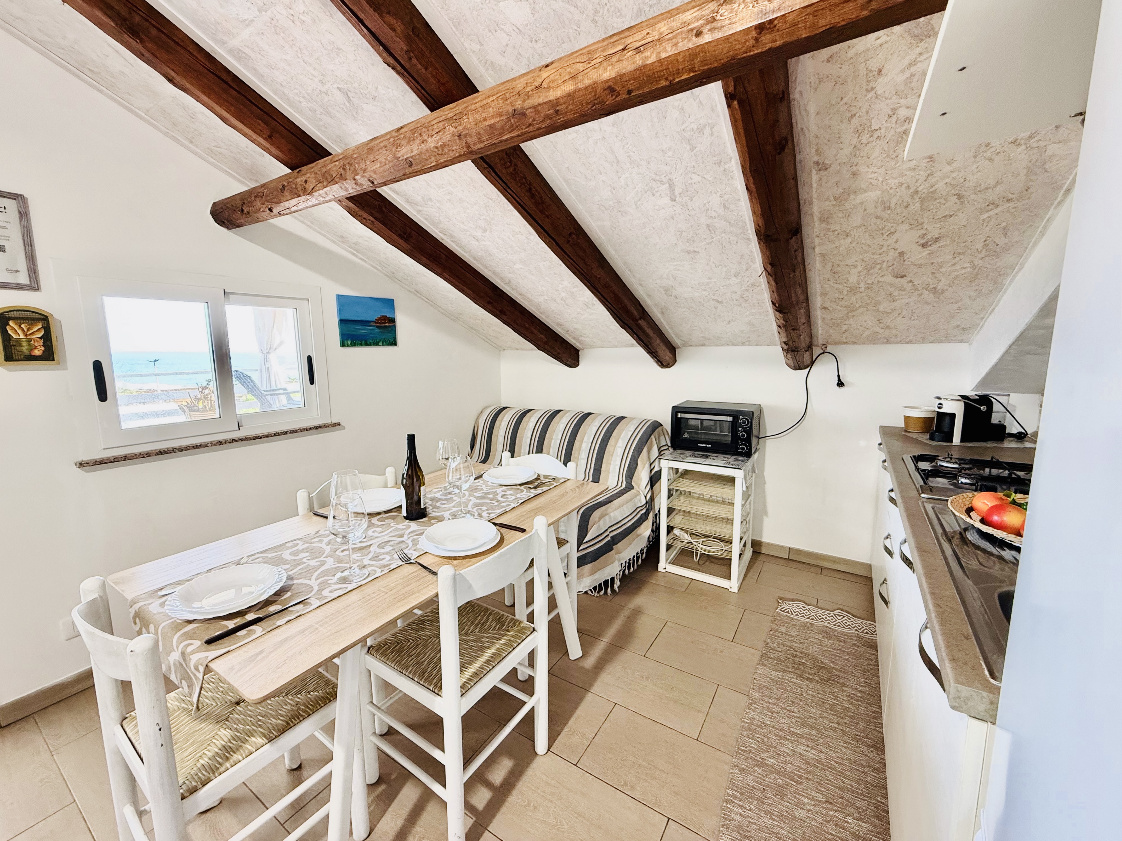 Parcheggio e ingresso sono in comune, ma il piano superiore con la vista mozzafiato e l’angolo relax è esclusivamente per te. A soli 100 metri si trova la spiaggia di San Lorenzo.
